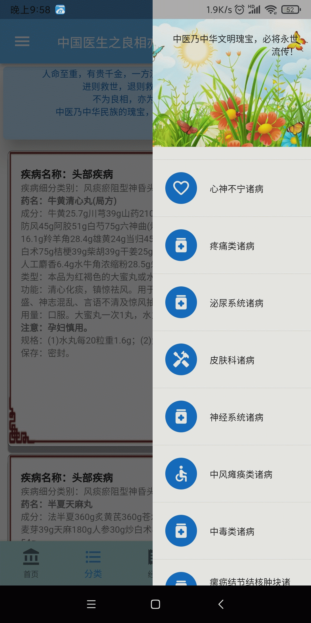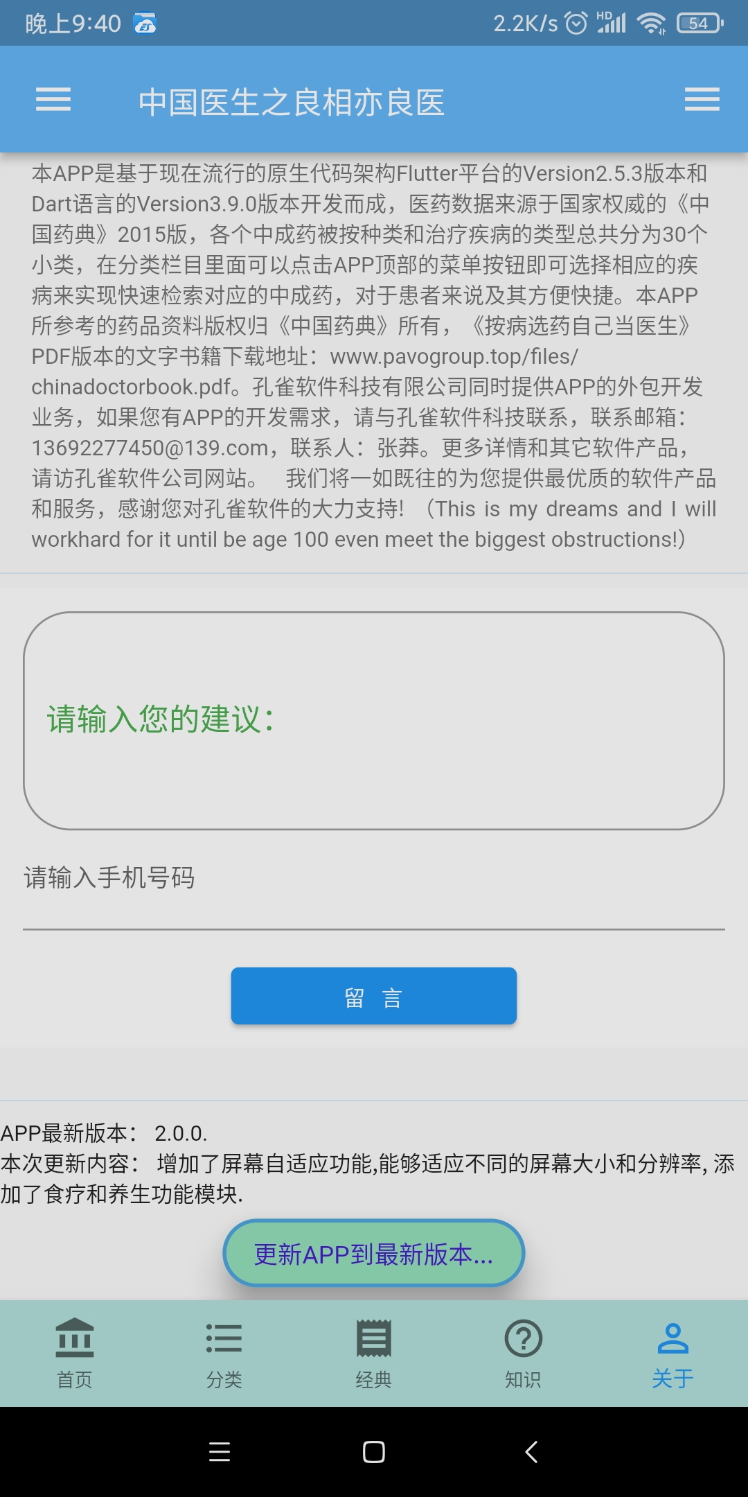 同时,为了更好的传播中医药的伟大历史和奇佳的治疗效果,现在孔雀软件科技决定开放全部源代码和数据,让大家可以自由的下载和学习。学医先立德,这是中医的学习的第一条戒律,治病救人,救死扶伤是中医历来的优秀传统,而且,这也是本APP设计的初衷,完全免费,没有任何的广告利益在里面。纯粹就是为了共享中医药的知识和经验,为人民服务是继承和实践中华文明传统美德的最忠实也是最真实的体现。就像我编著的《按病选药自己当医生》的书中所说的:”不为良相,亦为良医“,中华民族5000多年的历史告诉我们,做人,当为人品高尚之人;为医,当为医德高尚之医生。这也就是为何中华民族5000年文明历史长盛不衰的根本原因所在。无论社会怎么变换,朝代如何更替,中华民族总是能够最终回到正确的轨道上面来,继续发扬和传承5000年的优秀历史文化和传统,坚持民心,不忘使命,这个使命就是一切以良知为根本,继承和发扬中华民族5000年来的优秀传统文化,因为5000年的历史告诉我们,无论面对怎样纷繁复杂的社会环境,做人的良知一定不会错,如果以良知为准绳,那么怎么面对复杂的社会环境都会迎刃而解,轻轻松松的去面对和解决所有的问题。方向不错,就一定到到达目的地,方向错了,再怎么努力都是徒劳枉然。希望中医药能够在大家都一起努力下,再次崛起,成为中华民族文化渊源中继续传承的重要的一脉。下面是下载链接: